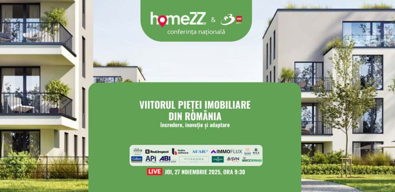 Pentru a oferi transparență și încredere, vă invităm la conferința națională „VIITORUL PIEȚEI IMOBILIARE DIN ROMÂNIA – ÎNCREDERE, INOVAȚIE ȘI ADAPTARE.”, o inițiativă homeZZ, platforma unde vinzi, cumperi și închiriezi proprietăți imobiliare, susținut de A3 CNN.